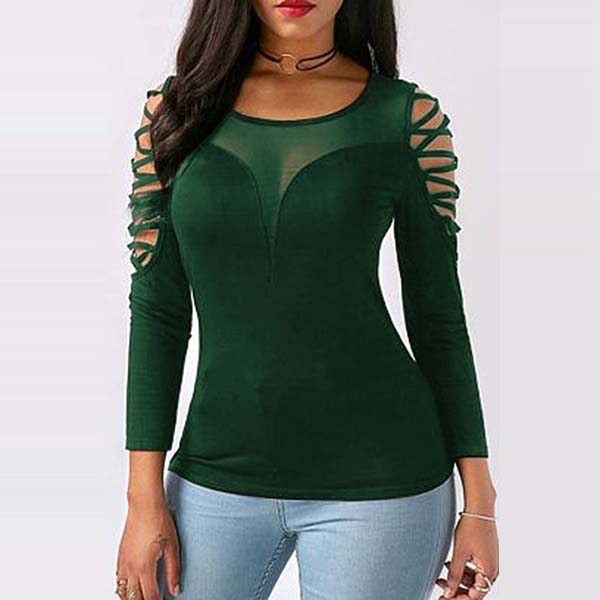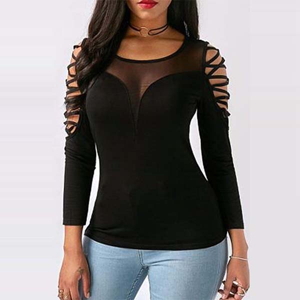 Sexy Off-shoulder Long Sleeve Gauze Spliced Slim Fit Top