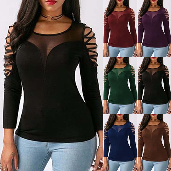 Add a dash of sexy and flirty vibes to your wardrobe with this top. Comes with a solid color,its alluring design details like off-shoulder and see-through gauze spliced design will make you look more eye-catching. You can match with a high waist bottom to finish a sexy and charming daily look.