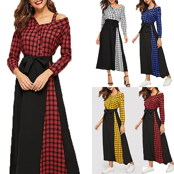 It is a good chance to give your style an instant boost with this dress. Off-shoulder design can lend you a sexy and flirty look,while the plaid spliced details will make this piece more attractive. No matter for your night dating or weekend out,this beautiful dress can be a good choice.