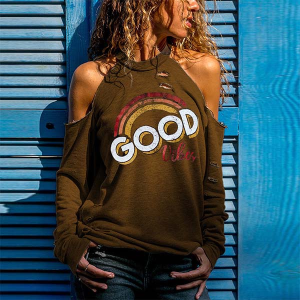 Sexy Off-shoulder Long Sleeve Letters Printed T-shirt