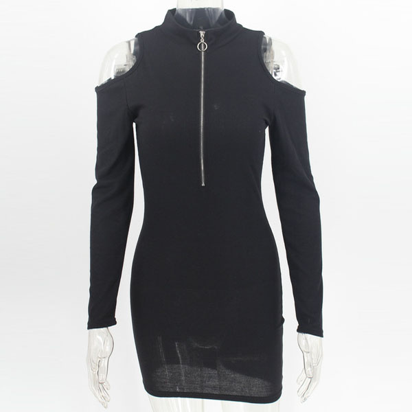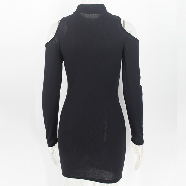 Thanks to the flattering black tone and fit silhouette design,your perfect curve can have a full display in this dress. Finished with long sleeve and mock neck design,the off-shoulder design will make you look sexier. For your night dating,this dress can help you catch more eyes.