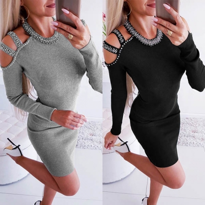 Modestly stylish,while still maintaining its alluring feminine appeal, that's why we love this dress! The off-shoulder and rhinestone spliced details make this piece look more alluring and attractive,while the fit silhouette design can demonstrate your figure. For your dinner dates or weekend gatherings,this dress is a wise choice.