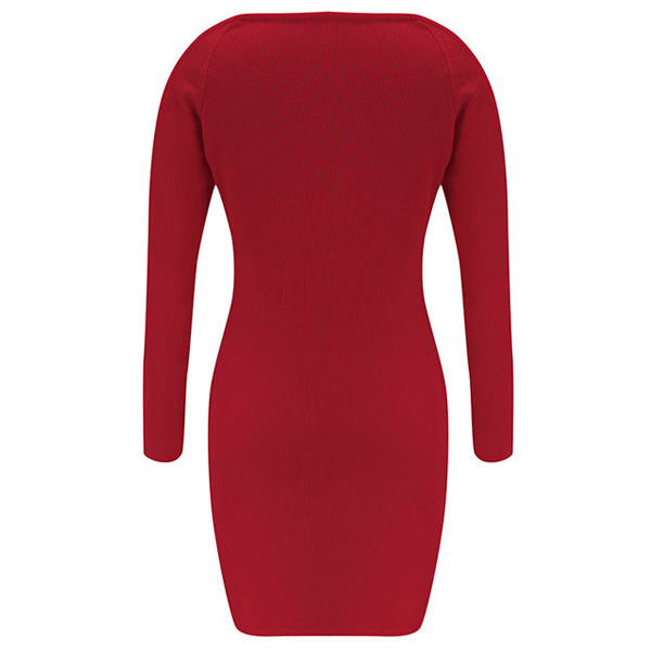 Sexy Off-shoulder Long Sleeve Rhinestone Spliced Tight Dress