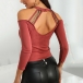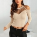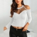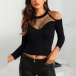 You can easily exude your sexy and flirty style with the help of this t-shirt! Its alluring design details like off-shoulder,backless and gauze spliced design can give you a more alluring look. We suggest you matching with a high waist bottom to start your wonderful day!