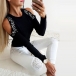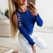 Combines of sexy and stylish vibes,this t-shirt is worth to arouse you attention. The off-shoulder and rhinestone details make this piece look so sexy and shinning. Finished with long sleeve,round neck and a fit silhouette,this wonderful piece can offer you different fashion styles by matching with different style bottoms.