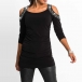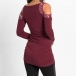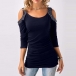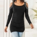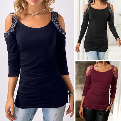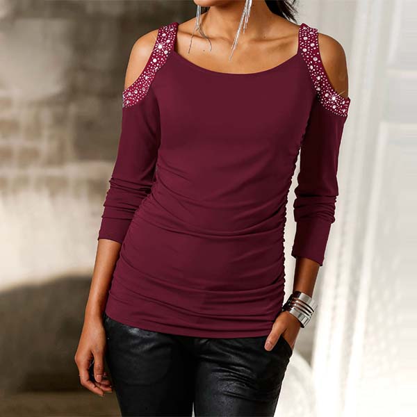 Sexig off-shoulder långärmad rundhalsad T-shirt med rhinestone-detaljer