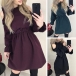 Sexy Off-shoulder Long Sleeve Round Neck Ruffle Dress