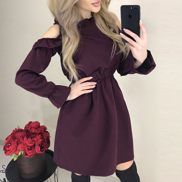 If style and comfort is what you're seeking for,then this dress is sure to strike your fancy. Solid color style,the off-shoulder and ruffle design will make this piece look sexy yet flirty. It is an easy thing to create a beautiful and sassy look with the help of this dress.