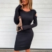 Sexy Off-shoulder Long Sleeve Round Neck Slim Fit Dress