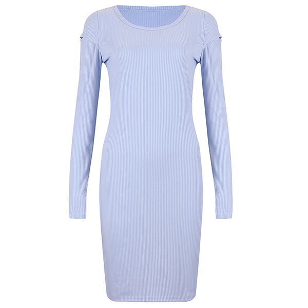 Your slender figure can have a full display in this dress with its fit silhouette design. Boasts a solid color,the off-shoulder design will offer you a sexier look. You can wear it alone in these spring and autumn days or match with your overcoats in these chilly winter days.