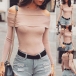 Sexy Off-shoulder Long Sleeve Round Neck Slim Fit Knit Top