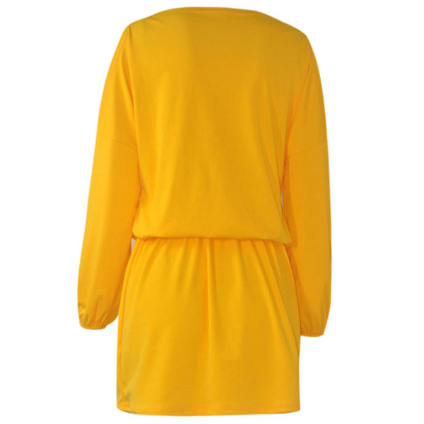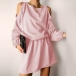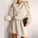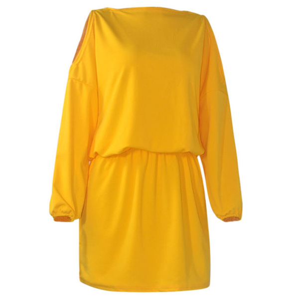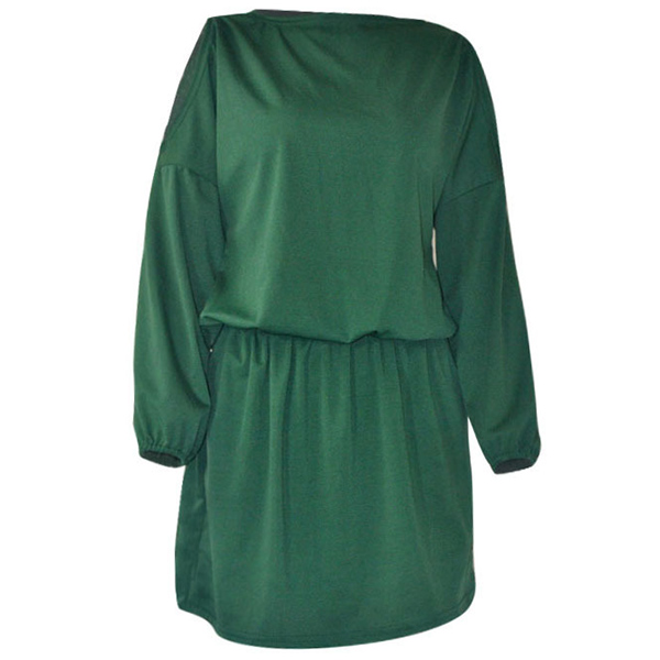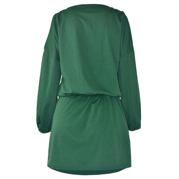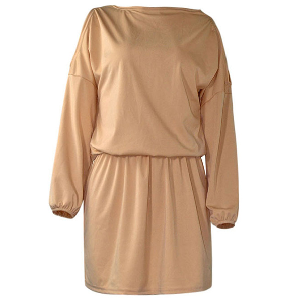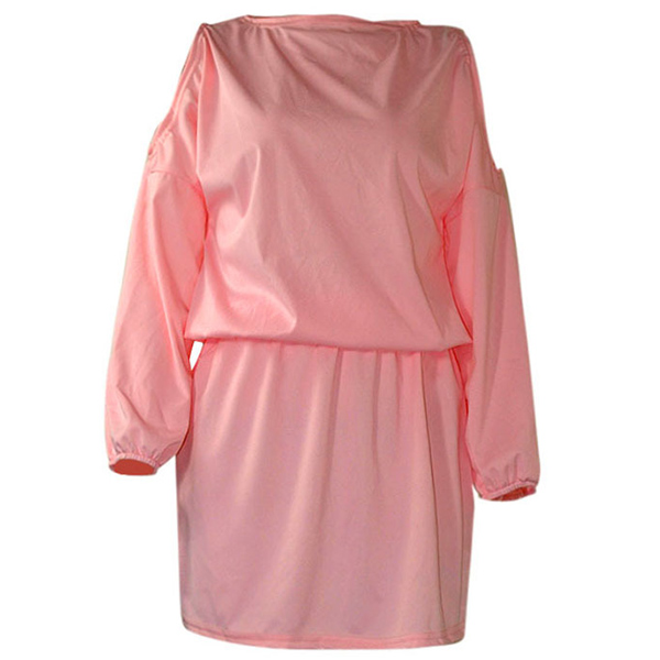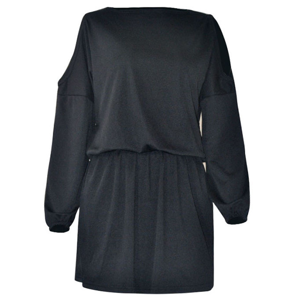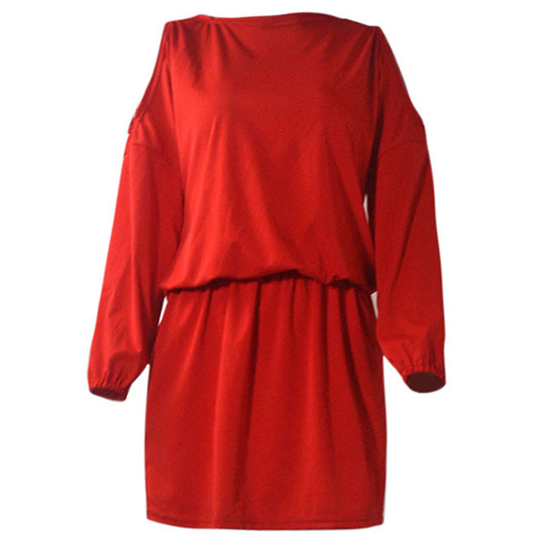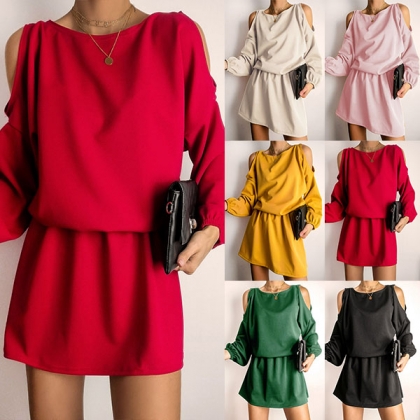 Sexy Off-shoulder Long Sleeve Round Neck Solid Color Dress