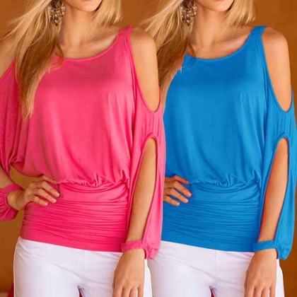 this t-shirt. Solid color style,its off-shoulder and hollow out long sleeves design makes this piece look