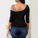 When it comes to a cozy yet sexy style,you can have a try this t-shirt. It comes with a classic yet flattering black tone,the off-shoulder design can lend you a dash of flirty vibes. You can match with any kind of bottoms you like with this t-shirt to start your wonderful day!