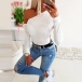 This t-shirt comes with a solid color,the off-shoulder design can lend you a sexier look,while the fit silhouette design can showcase your perfect body-line. You can match it with any bottom you like to achieve for a stylish and charming look.