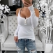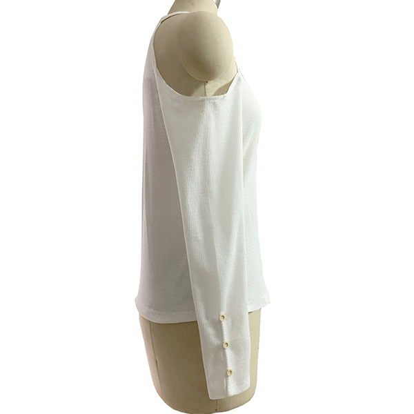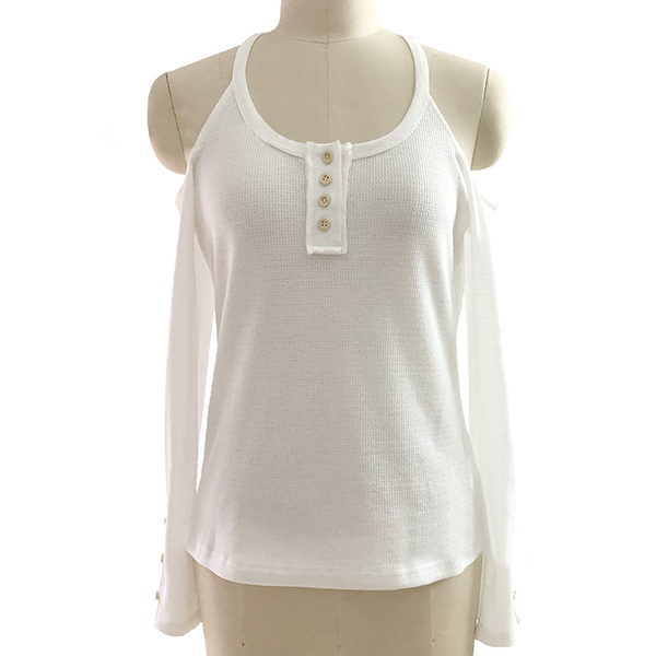Sexy Off-shoulder Long Sleeve Solid Color T-shirt