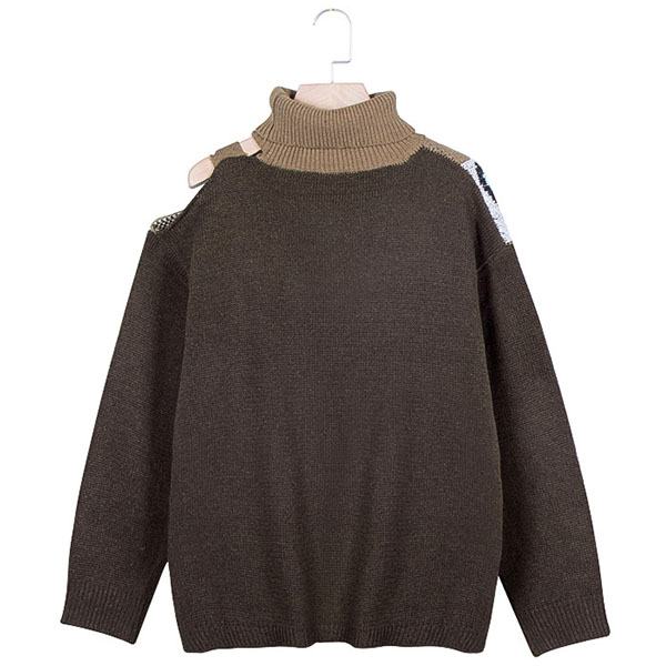This sweater that combines of stylish and feminine vibes is worth to arouse your attention when the days get cold. Finished with long sleeve and turtleneck design,the off-shoulder and leopard spliced details make this piece look so attractive and sassy. You can match it with your favourite bottom to finish a stylish and charming autumn look.