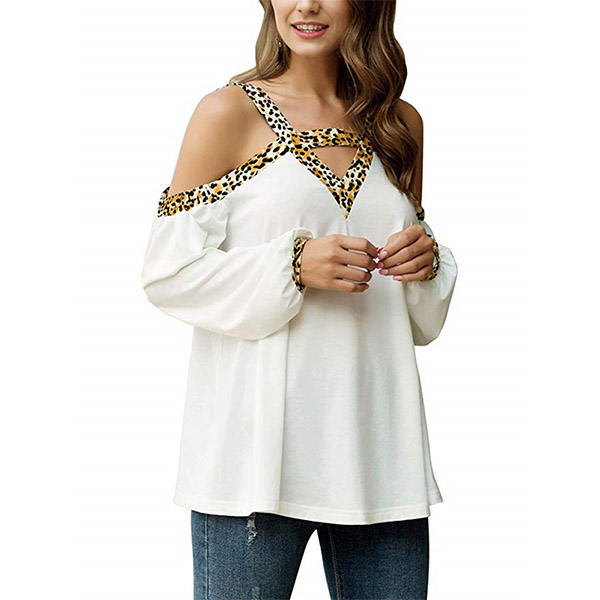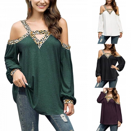 You can easily win more eyes when you wear this wonderful top. The leopard printed spliced details will make this piece look more eye-catching,while the off-shoulder and v-neck design can lend you a sexier look. When you wanna boost your charm,you can have a try this piece.