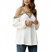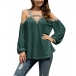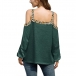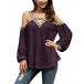 Sexy Off-shoulder Long Sleeve V-neck Leopard Printed Spliced Top