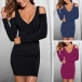 Sexy Off-shoulder Long Sleeve V-neck Slim Fit Dress