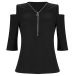 Sexy Off-shoulder Long Sleeve Zipper V-neck T-shirt