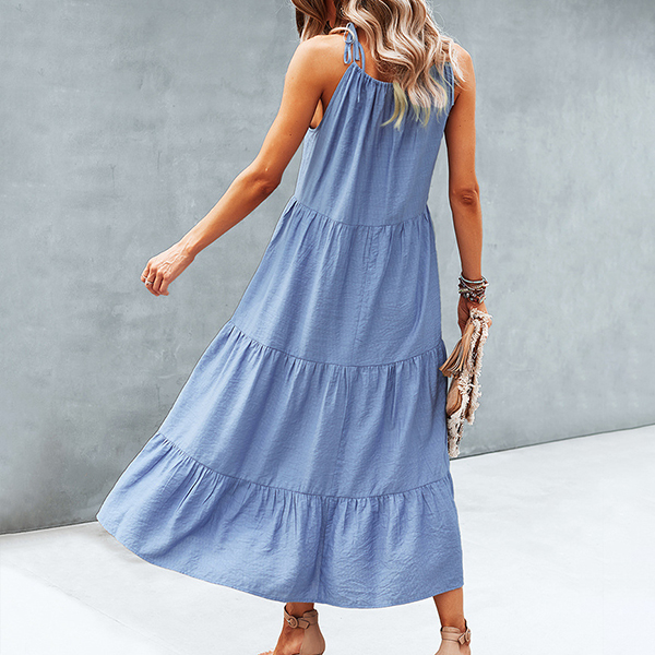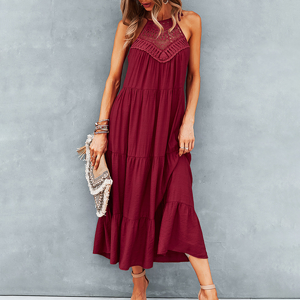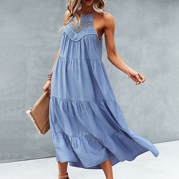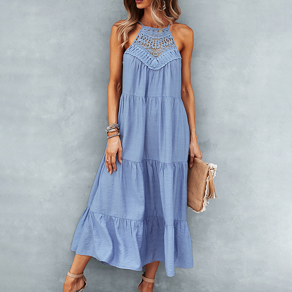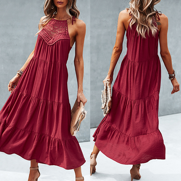Hey,girls,you can greet the sun-soaked summer days with a dreamy and relaxed piece such as this dress. Sling style,the off-shoulder and lace spliced details will make this piece fill of sexy and flirty vibes,while the ruffle hem design can lend you a dash of sweet vibes. On these sunny days,adding a sweet straw hat would make you look more perfect!