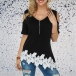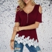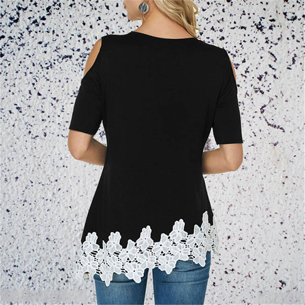 Sexy Off-shoulder Short Sleeve Lace Spliced Hem T-shirt
