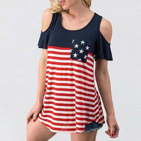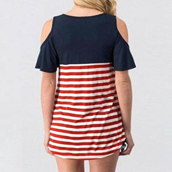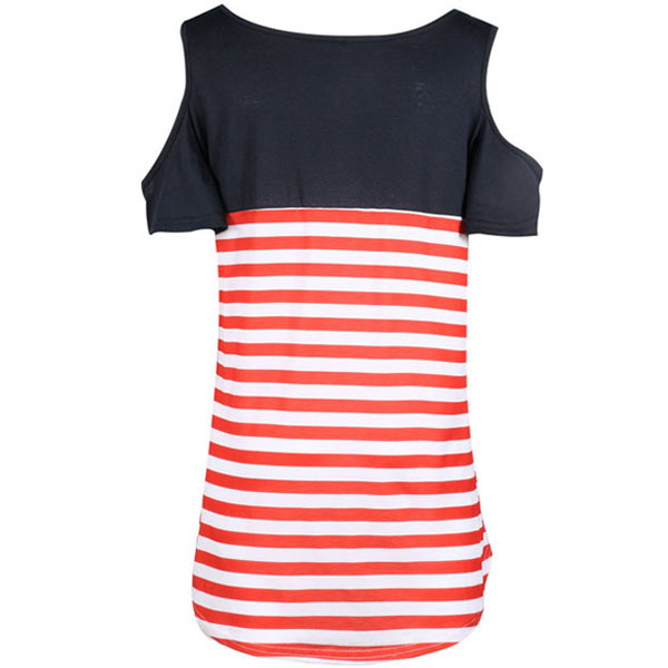 Sexy Off-shoulder Short Sleeve Round Neck Striped T-shirt