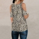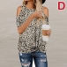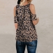 Sexy Off-shoulder Short Sleeve Twisted Hem Leopard Printed T-shirt