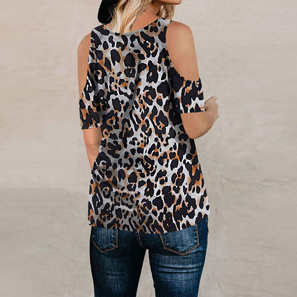 Enrich your wardrobe with this sexy and stylish t-shirt! The off-shoulder and leopard printed details can better exude your feminine appeal,while the twisted hem design will further enhance its charm. When you wear it,your style can have a boost and update.