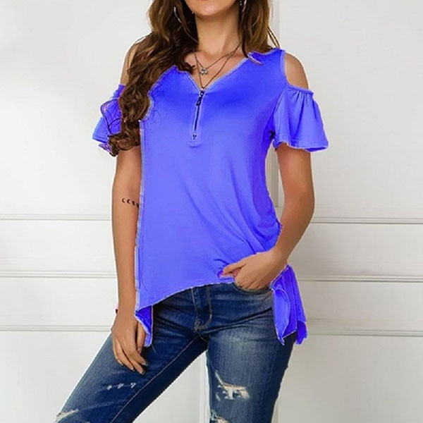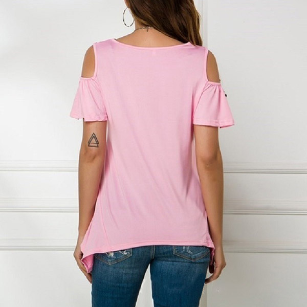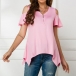Sexy Off-shoulder Short Sleeve V-neck Irregular Hem T-shirt