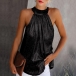 It is a good chance to expose your charming skin through this wonderful top. Halter style,with off-shoulder design,sexy and alluring. The shinning design makes it look more eye-catching. You can match with a shorts to enjoy these sun-soaked summer days.
