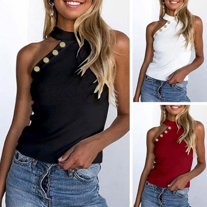 Add a dash of sexy and flirty vibes to your daily look with this t-shirt! It comes with a solid color,the off-shoulder and button details make this piece look more attractive. All-match design allows to be matched with different style bottoms.