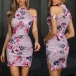 Sexy Off-shoulder Slit Hem Slim Fit Printed Halter Dress