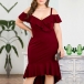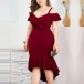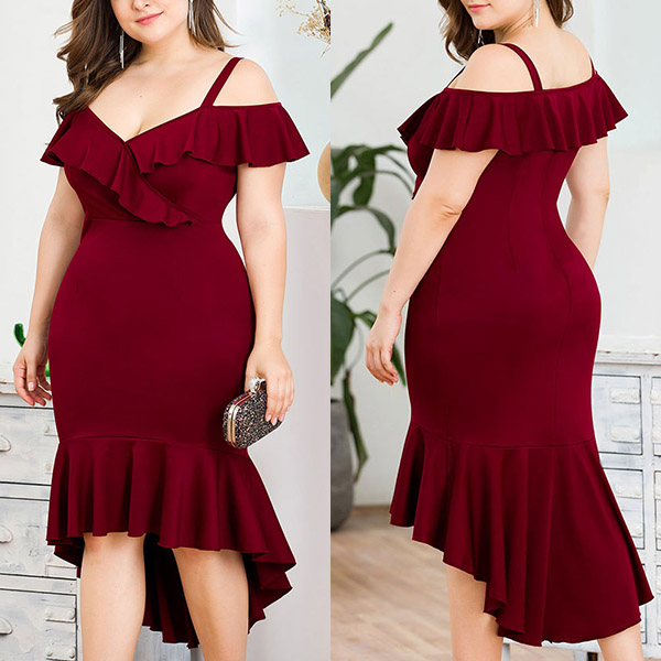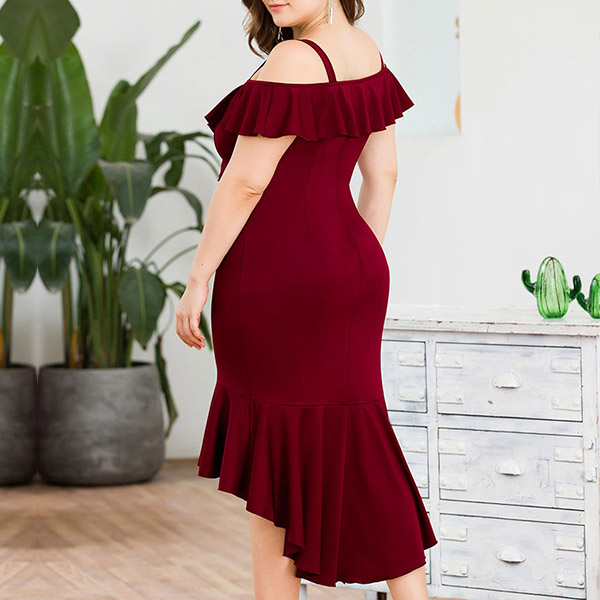 Sexy Off-shoulder V-neck High-low Fishtail Hem Ruffle Sling Dress