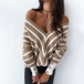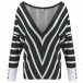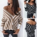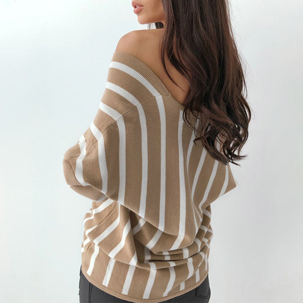 Sexy Off-shoulder V-neck Long Sleeve Striped Top