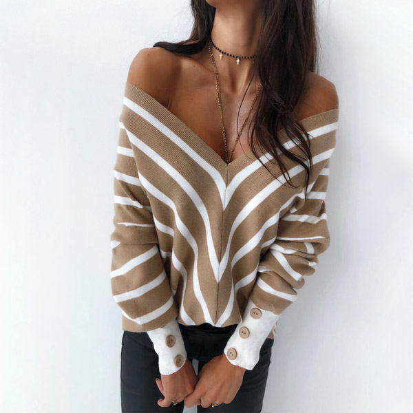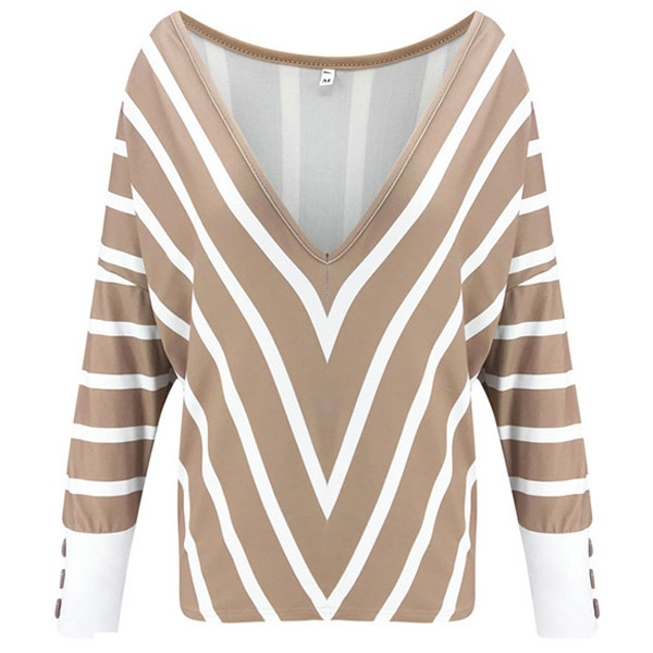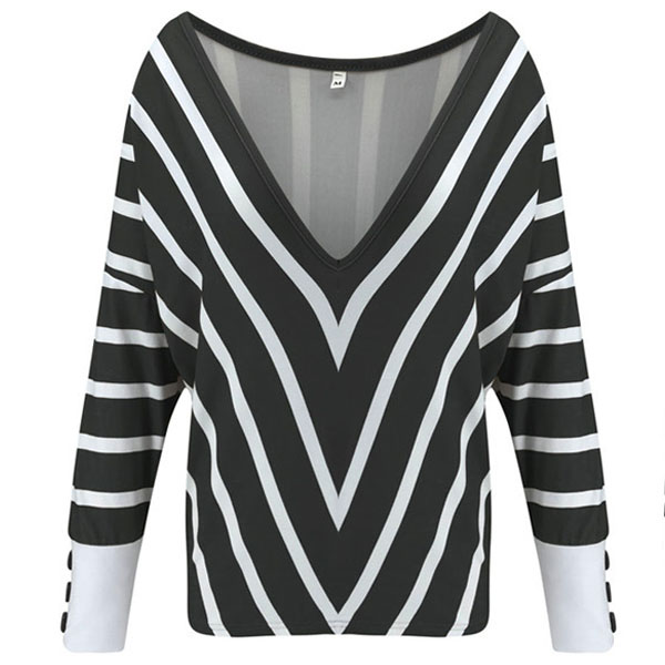 This long sleeve top features stripe element,stylish and popular,while the off-shoulder and v-neck design will offer you a sexier look. If you wanna look more beautiful and charming,we suggest you adding a sparkle necklace.