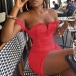 You are sure to arouse a splash when you don this little stunner. Boasts a solid color,the off-shoulder,v-neck and ruffle details make this piece look so sexy and alluring. And the fit silhouette design can portray your slender figure. When matching with your sexy heels and sparkle necklace,you can't be more stunning!