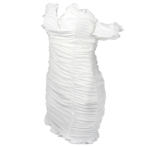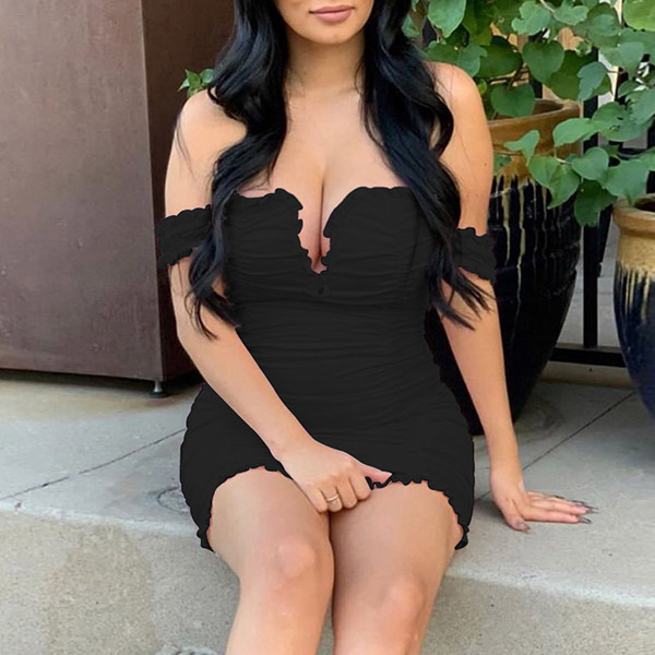 Sexy Off-shoulder V-neck Slim Fit Ruffle Dress