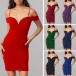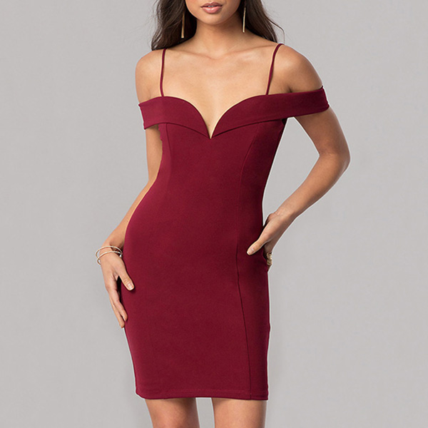 Sexy Off-shoulder V-neck Solid Color Slim Fit Sling Dress