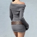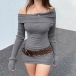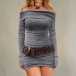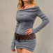 Ribbad off-shoulderklänning med långa ärmar, sexig och figurnära