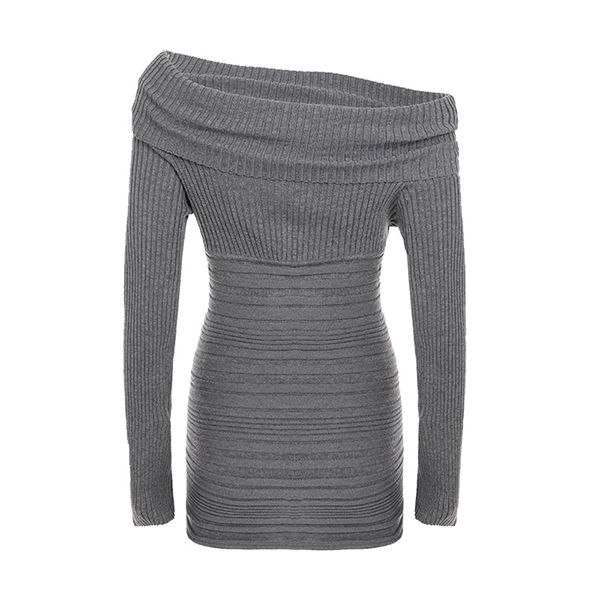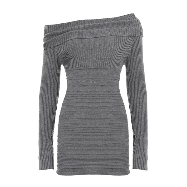 Den här klänningen har en elegant off-shoulder-stil med en figurnära, ribbad konstruktion och en sofistikerad, långärmad design som utstrålar modern feminin elegans. Kombinera med klackar och fina accessoarer för en romantisk och sofistikerad look.