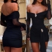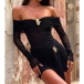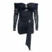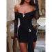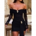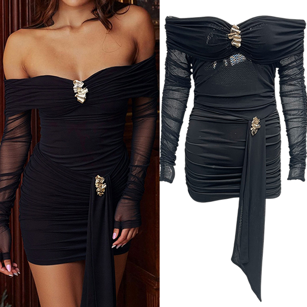 Festklänning Off-Shoulder – Långärmad Bodycon med Metallspänne och Rynkdetaljer