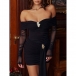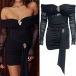 Skilj dig från mängden med denna eleganta off-shoulder festklänning – utrustad med lyxiga metallspännen och noggrant placerade rynkdetaljer som formar och förhöjer din silhuett. Den kroppsnära designen smickrar dina naturliga kurvor, samtidigt som den romantiska axel-fria skärningen ger en tidlös chic-känsla. Perfekt för bröllop, cocktailkvällar och exklusiva fester där du vill vara i blickfånget.