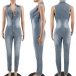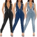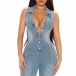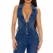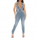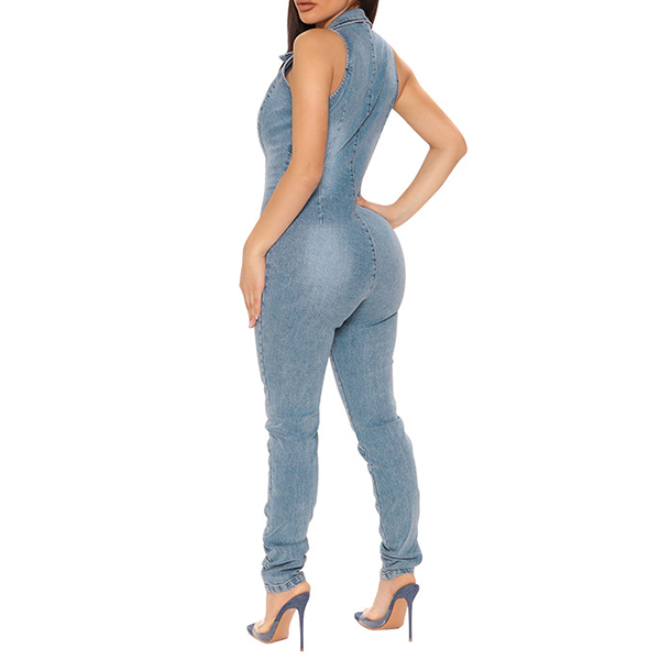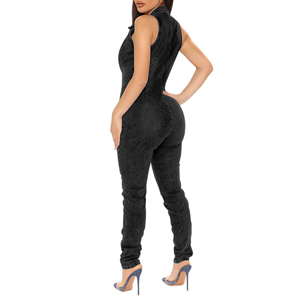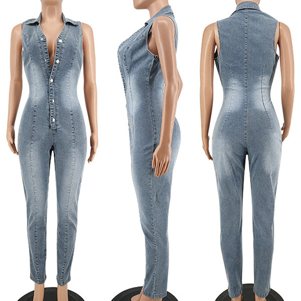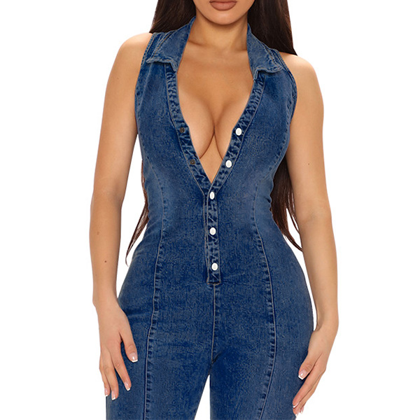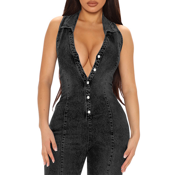 Sexig gammaltvättad Knäppad V-ringad Ärmlös Figursydd Overall