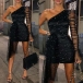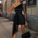 Sexy One-shoulder Long Sleeve Gauze Spliced Party Dress