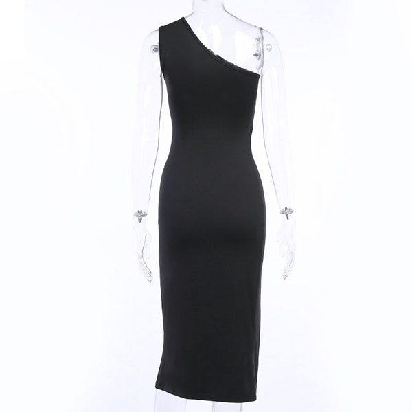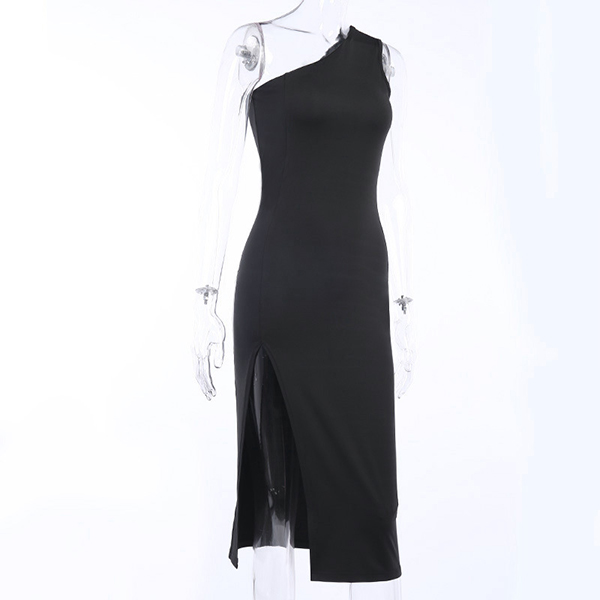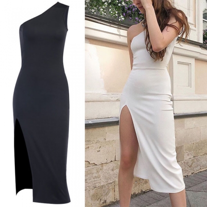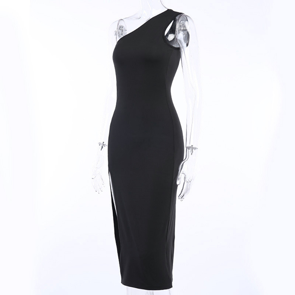 Sexy One-shoulder Slit Hem Sleeveless Slim Fit Dress