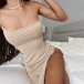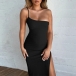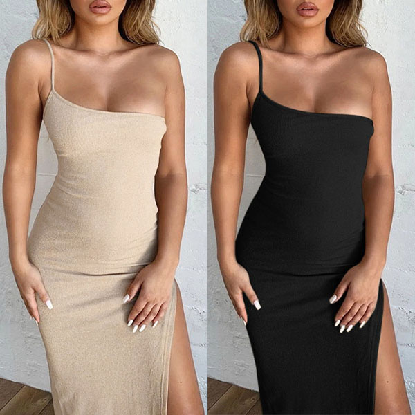 Sexy One-shoulder Slit Hem Slim Fit Sling Dress