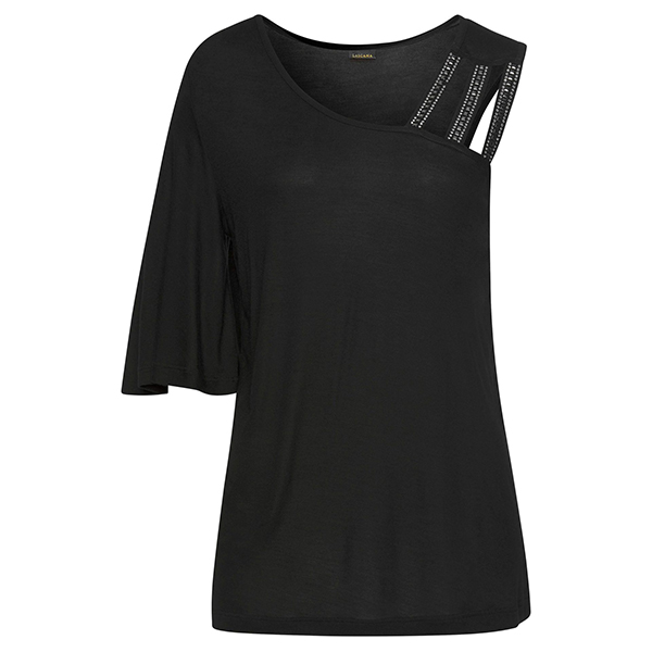 Attracted by this chic and unique t-shirt? Then invite it to your wardrobe. Solid color style,the one-shoulder,trumpet sleeve and rhinestone details make this piece full of charm. Your daily style can have an instant update when you wear this little item.