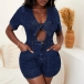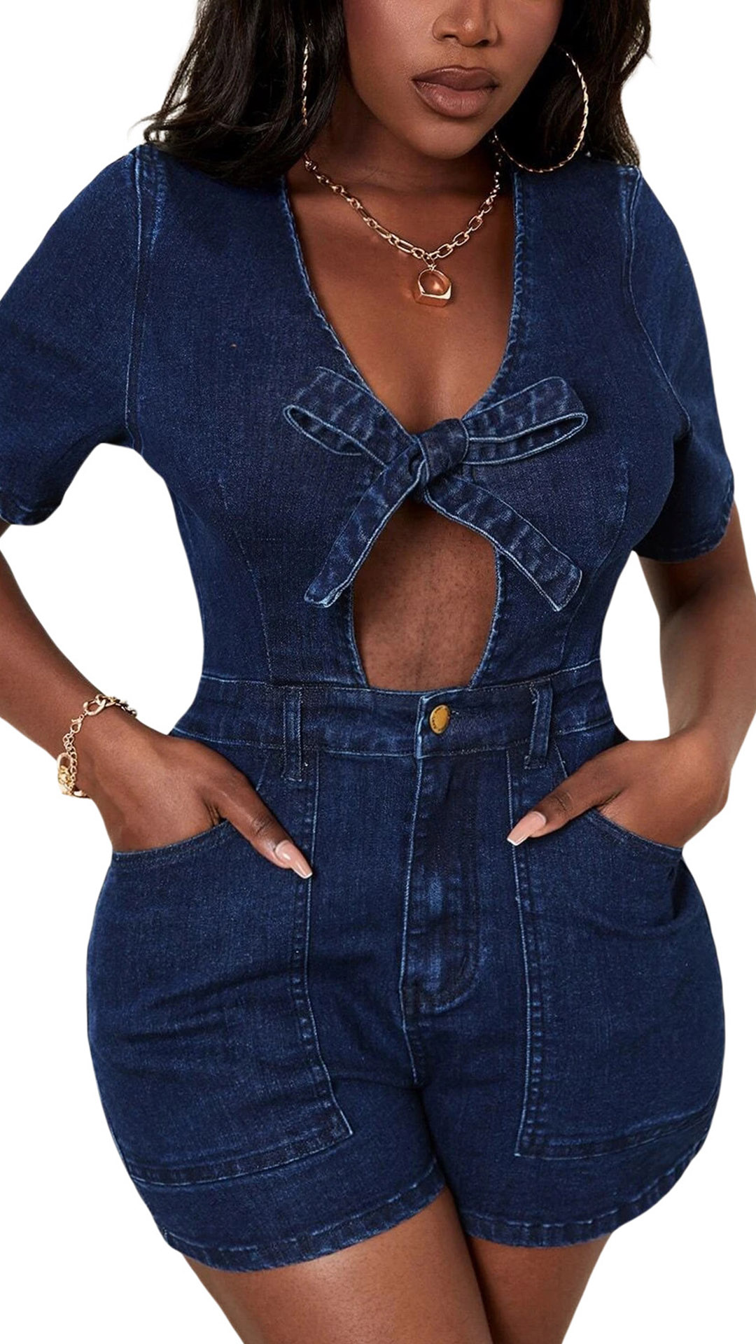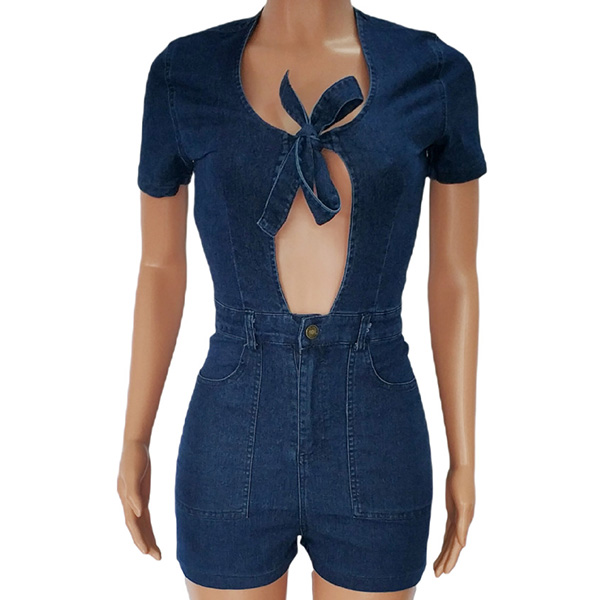Sexig Plunge V-ringad Bowknot Kortärmad Jumpsuit.